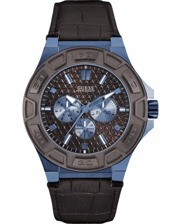 Guess Herenhorloge Kwarts Bruin• Materiaal kastdeksel: Staal• Soort glas: Mineraal• Materiaal Band: Leer• Kleur kast: Bruin• Waterdichtheid: 100 m (10 ATM)• Diameter: 43 mm