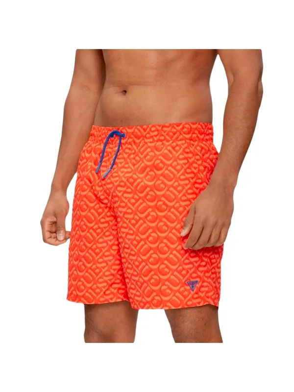 Guess Palmas zwembroek voor heren, oranje synthetisch. Authentiek Guess-merkkledingstuk - streetwear/sportkleding design van Guess - Guess voor heren, modieus en perfect voor dagelijks gebruik - deze oranje Guess zwembroek past perfect bij de rest van je garderobe - comfortabel synthetisch materiaal - klassiek - Palmas -