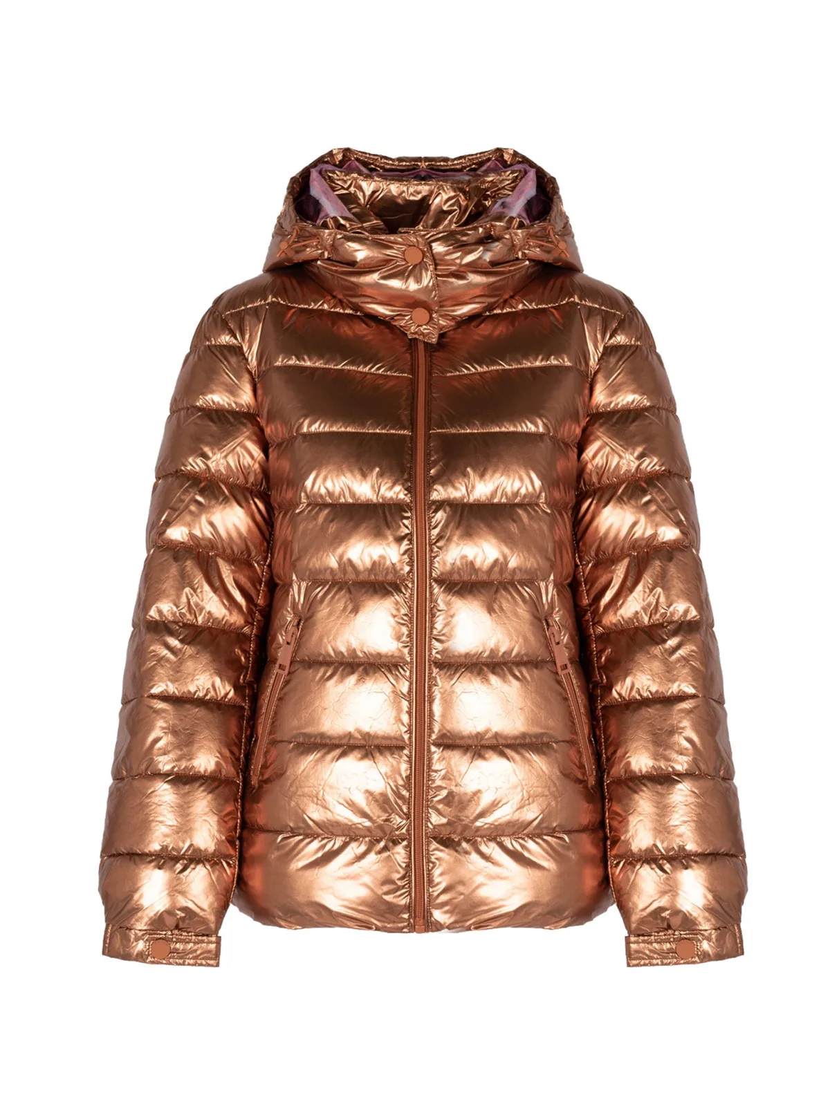 De "Puffer" jas met metallic afwerking is een ideale keuze voor koude dagen wanneer je stijl en functionaliteit wilt combineren. Dankzij de Thermore®-technologie geniet je niet alleen van de warmte, maar ook van de lichtheid, waardoor het jack je niet belemmert in je bewegingen en uiterst comfortabel is om te dragen. De metallic afwerking zorgt voor een moderne, modieuze look die de aandacht trekt en je doet opvallen. Een hoge kraag met capuchon biedt extra bescherming tegen wind en kou en geeft het jack een moderne look. Dit is een uitstekende oplossing voor wisselende weersomstandigheden. De capuchon kan eenvoudig worden verwijderd of versteld, zodat je de jas kunt aanpassen aan verschillende stijlen en weersomstandigheden. De lange mouwen zijn zo ontworpen dat ze perfect aansluiten op het lichaam, wat het comfort verhoogt en beschermt tegen de kou. Elastische manchetten voorkomen dat koude lucht binnendringt, waardoor de jas nog functioneler en comfortabeler wordt. De versierde binnenkant van de jas is een verborgen element dat de jas een luxueus karakter geeft en je een speciaal gevoel geeft, zelfs als alleen jij van dit detail op de hoogte bent. De binnenvoering van zachte, prettig aanvoelende stof zorgt voor extra comfort en warmte, waardoor de jas ideaal is voor elke gelegenheid. De zijzakken zijn niet alleen praktisch, maar ook stijlvol, en zorgen ervoor dat je kleine benodigdheden zoals je telefoon of sleutels binnen handbereik hebt. Bovendien zijn de zakken gevoerd met zacht materiaal, dat je handen beschermt tegen de kou en de jas extra comfort geeft. Een merkdetail op de ritsen is een subtiele maar elegante touch die de hoge kwaliteit van de jas benadrukt en prestige toevoegt. Deze fijne details laten de zorg zien die aan elk detail is besteed, waardoor de jas niet alleen praktisch, maar ook stijlvol en elegant is.