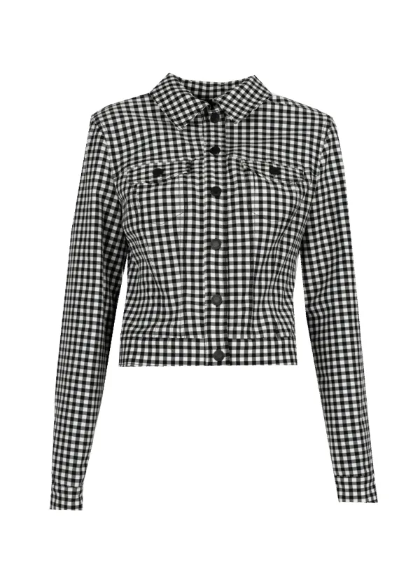 Eenvoudige, korte snit Geruit Met gesloten knopen van het merk Met kraagje Manchetten met geknoopte logo-knoopjes Aan de voorkant twee zakken met knoopsluiting Met modellerende naden Gemaakt van hoogwaardige stof