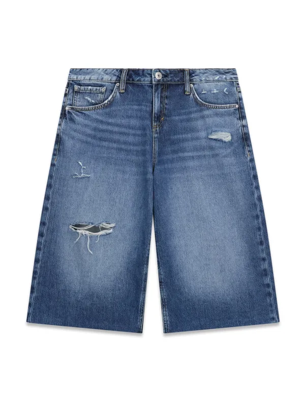 Design: Gevoerde zoom/rand, Ritssluiting, 5-pocket-style; Type sluiting: Ritssluiting; Materiaal: Denim; Motief: Effen; Extra's: Studs, Contrasterende naden, Used-look, Riemlussen; Wassing: ripped; Lengte: Knielengte; Pasvorm: Loosefit; Taillehoogte: Mid waist