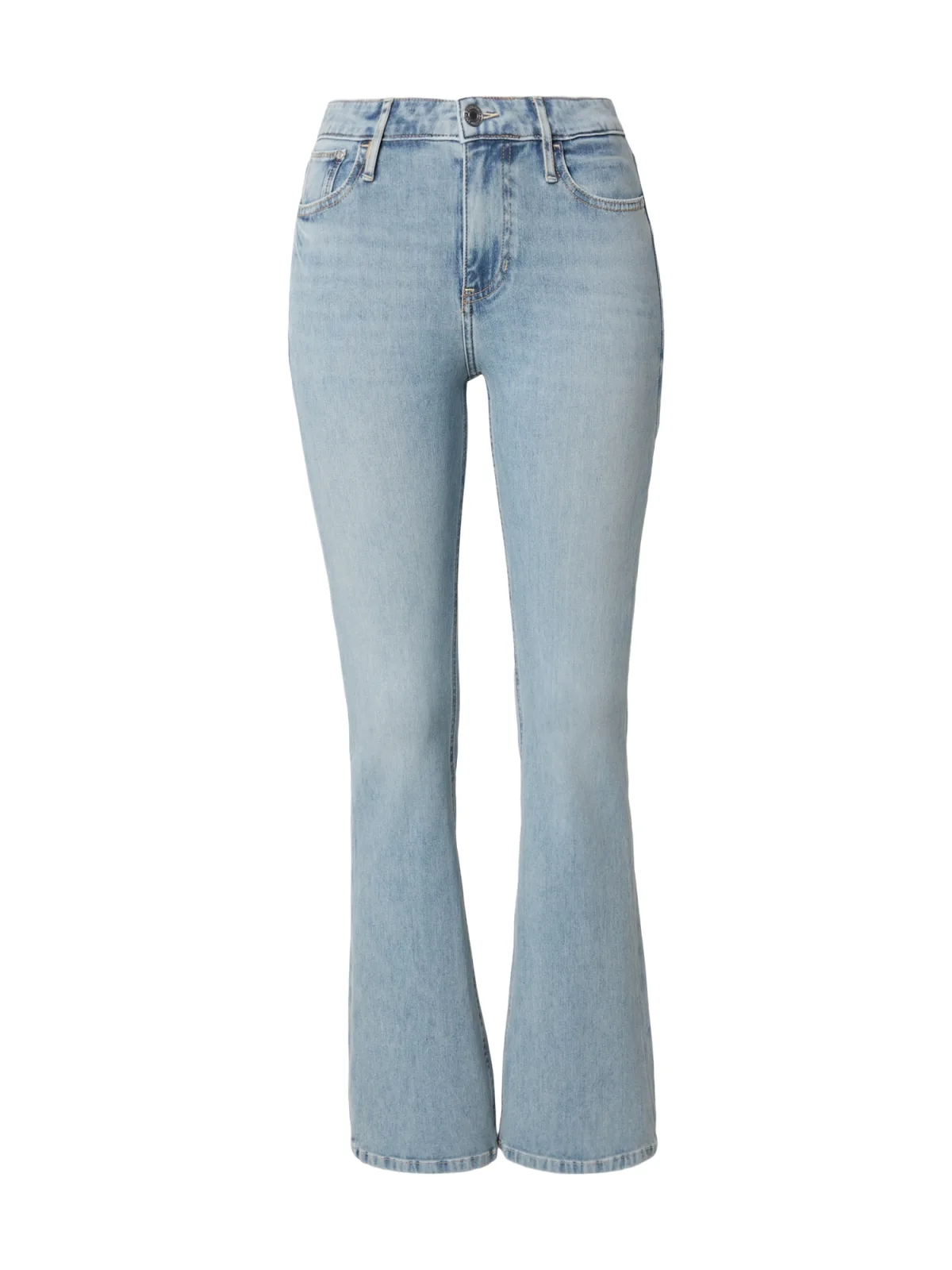 Design: Ritssluiting, 5-pocket-style; Type sluiting: Ritssluiting; Materiaal: Denim; Motief: Effen; Extra's: Contrasterende naden, Label patch/label flag, Riemlussen; Wassing: Light washed; Lengte: Lang/maxi; Pasvorm: Flared; Taillehoogte: Mid waist