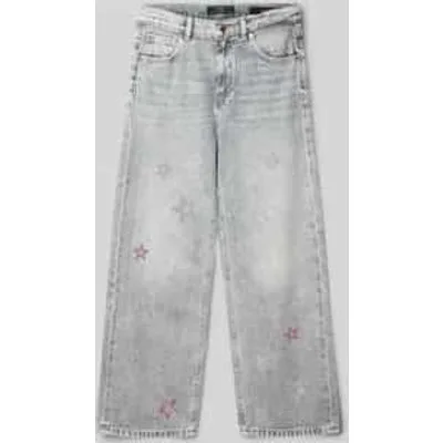 Kinderjeans van Guess;Puur katoen;Los model;5-pocketdesign;Knoop- en ritssluiting;Met siersteentjes;Bandwijdte bij maat 140: 34 cm;Binnenbeenlengte bij maat 140: 64 cm