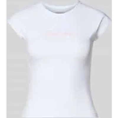 T-shirt van Guess Jeans voor dames;Elastische katoenmix;Slim fit;Gestikt logo;Ronde hals;Ruglengte bij maat S: 48 cm