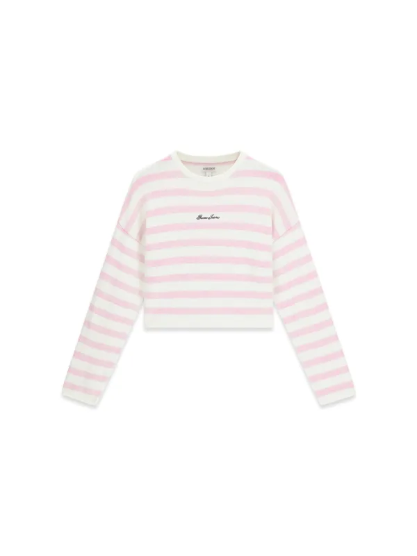 . 100% katoen trui.. Lange mouwen.. Ronde hals.. Gestreept.. Geborduurd logo.. Het model draagt maat S. Totale lengte: 48 cm / 19,3 inches.. Mouwlengte: 51 cm / 20 inches.. Zie onze maattabel hierboven.. Maat valt normaal.