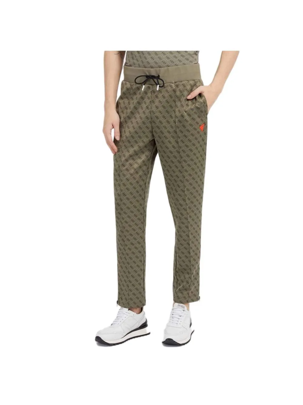 Guess Korbin herenjoggingbroek in kaki synthetisch materiaal. Authentiek Guess-kledingstuk – streetwear/sportkleding design van Guess – Guess voor modebewuste mannen, perfect voor dagelijks gebruik – deze kaki joggingbroek van Guess past perfect bij de rest van je garderobe – comfortabel synthetisch materiaal – klassiek – Korbin –
