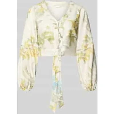 dames blouse van guess;mix van linnen en viscose;Cropped;Model 'SHIRLEY';V-hals;knoopsluiting;ruglengte bij maat S: 42 cm;mouwlengte bij maat s: 60 cm