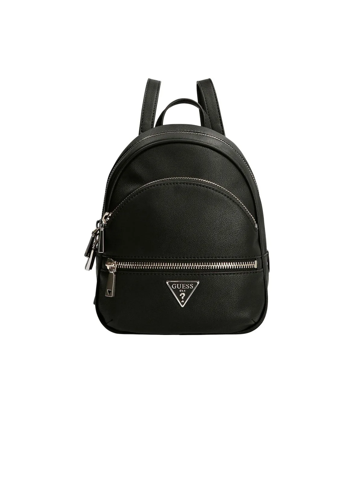 De rugzak is gesloten met een tweezijdige rits. In het hoofdvak zitten 2 insteekvakken en 1 ritsvak. Aan de voorkant bevinden zich 2 ritsvakken. Heeft een ruim hoofdvak. Het Guess-logo is duidelijk zichtbaar. 1 draaghandvat: ongeveer 20 cm. 2 verstelbare schouderbanden: ongeveer 75 cm - 86 cm.