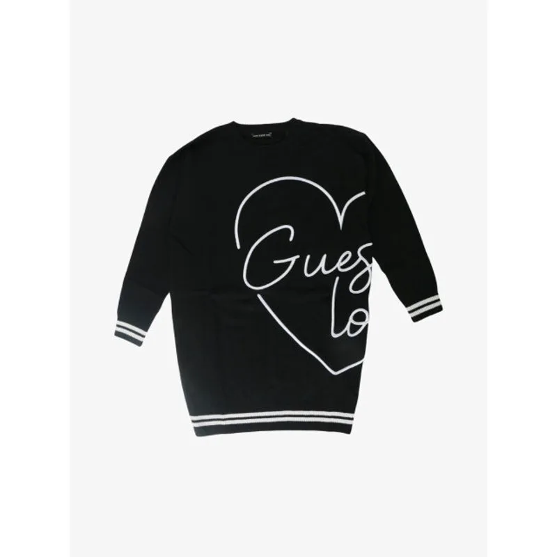 De Guess Kids jurk in zwart is een fijngebreide jurk met veel stretch. De jurk heeft een wit borduursel. Combineer de jurk met een panty/maillot en stoere boots.