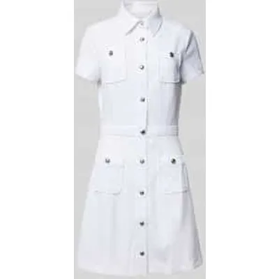 Mini-jurk van GUESS;Materiaalmix met stretch;Licht getailleerd model;Model 'ELORA';Overhemdkraag;Opgestikte zakken;Ruglengte bij maat S: 86 cm;Borstomvang bij maat S: 40 cm;Mouwlengte bij maat S: 17 cm