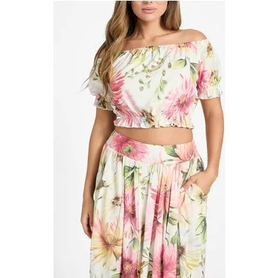 GUESS Off Shoulder Elodie Painted Daisies Prin