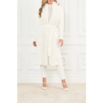 GUESS Paula Faux Fur Long Cardi Pale Pearl