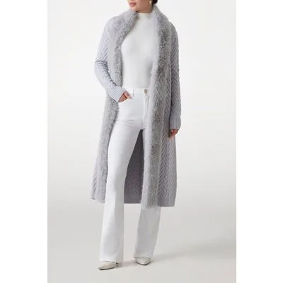 GUESS Paula Faux Fur Long Cardi Silk Gray