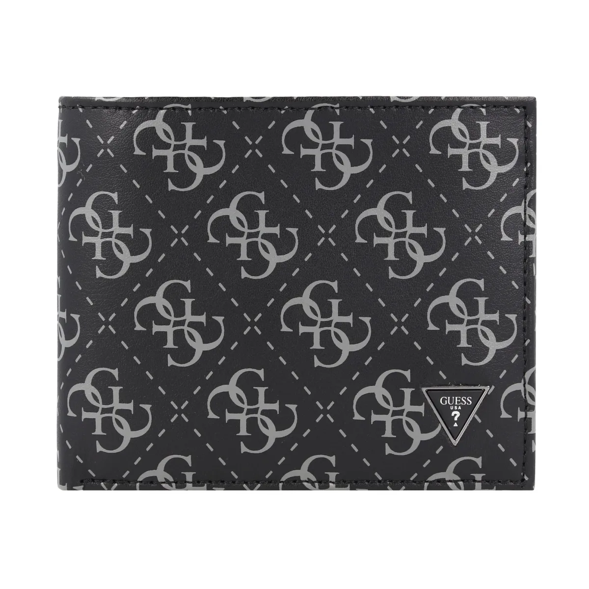 Design: Kaartvakjes, Sealed edges; Type sluiting: Open; Materiaal: Glad leer; Extra's: Label plaatje, All-over patroon, Label print