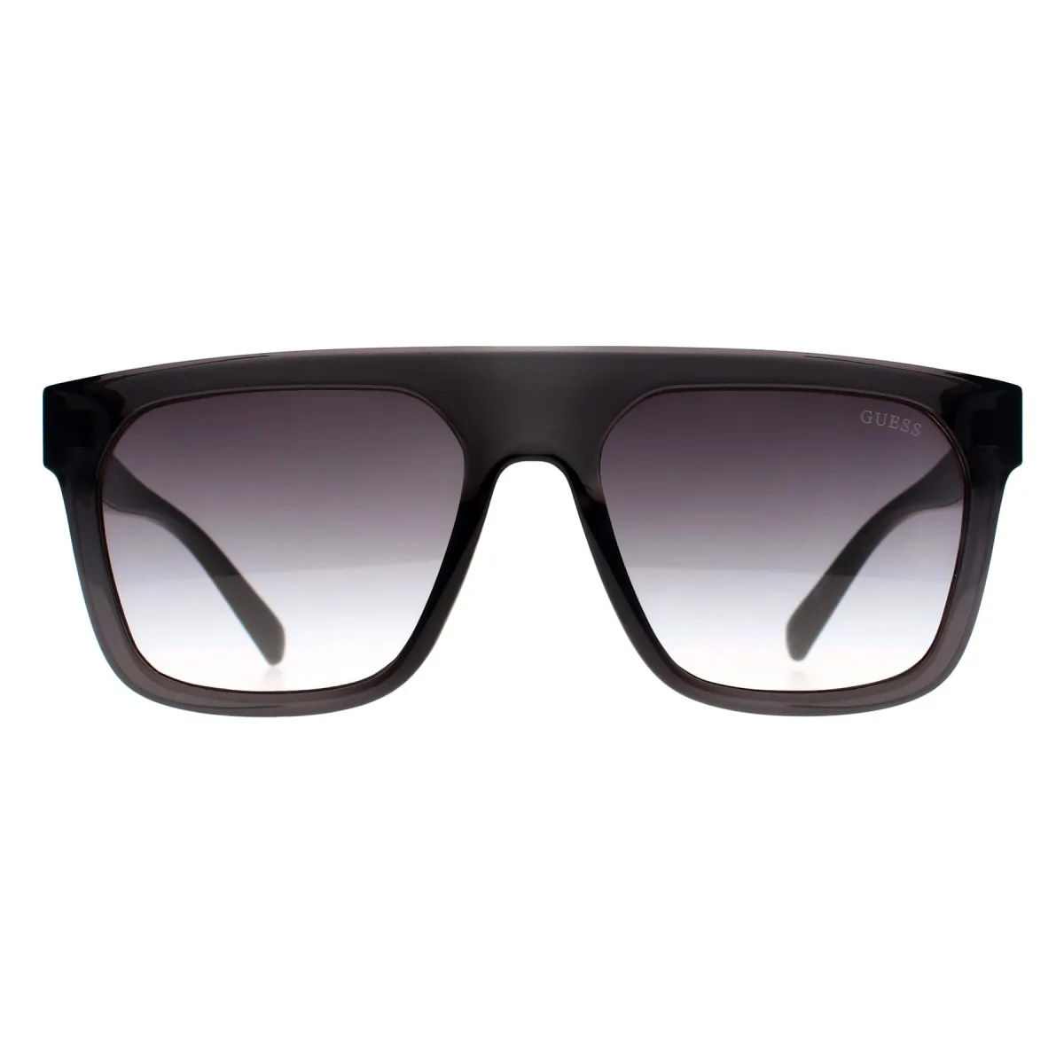 De Guess Rectangle Mens Grijs Gradient GO00068 zonnebril heeft een slank acetaat montuur met verfijnde metalen details voor een stijlvolle, urban look. Het lichtgewicht en comfortabele montuur zorgt voor een goede pasvorm, terwijl het kenmerkende Guess logo subtiele luxe toevoegt aan het ontwerp.