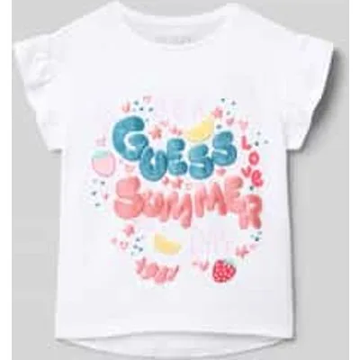 Kinderen T-shirt van Guess;elastische katoenmix;regular fit;Statement-Print;Ronde hals;Logo-print;motiefprint;met ruches;Ruglengte bij maat 116: 44 cm