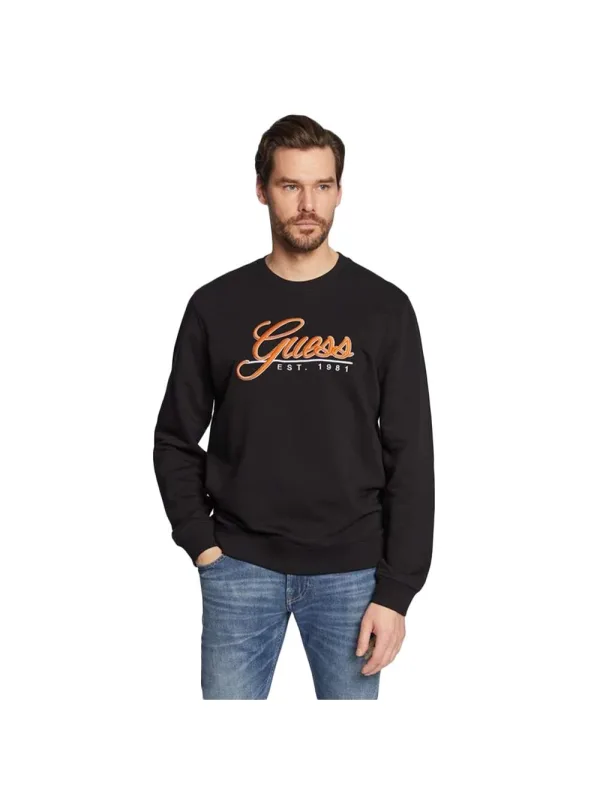 Guess Beau herensweatshirt van zwart katoen. Authentiek Guess-kledingstuk - streetwear/sportswear design van Guess - Guess herenmode, perfect voor dagelijks gebruik - dit zwarte Guess-sweatshirt past perfect bij de rest van je garderobe - comfortabel katoen - klassiek - stijlvol -