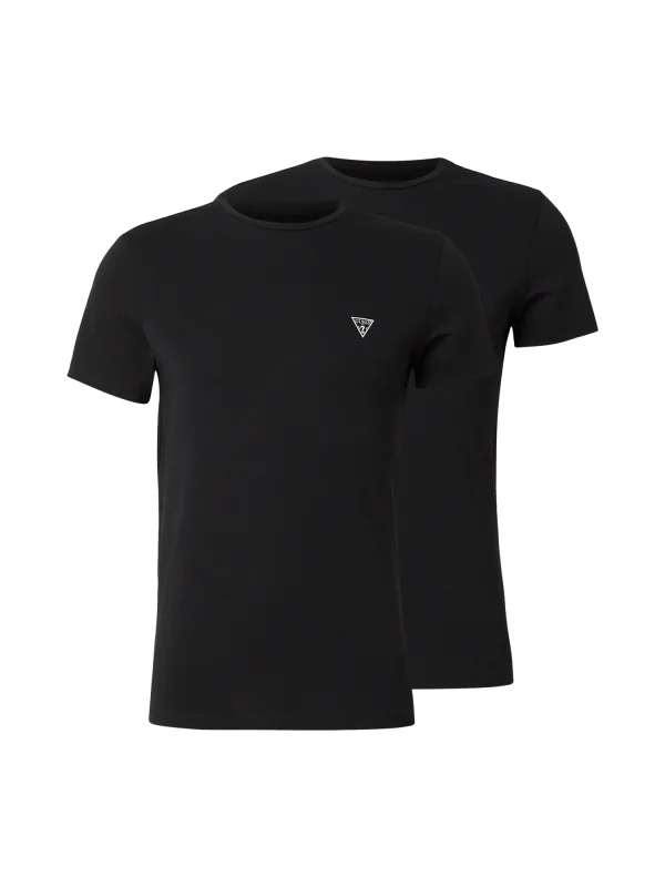 Guess T-shirtpakket x2 met logo en driehoek, zwart, katoen, heren. Authentiek Guess-merkkledingstuk - streetwear/sportkleding design van Guess - Guess voor heren, perfect voor dagelijks gebruik - dit zwarte Guess T-shirt past perfect bij de rest van je garderobe - comfortabel katoen - klassiek - Pakket x2 met logo en driehoek.