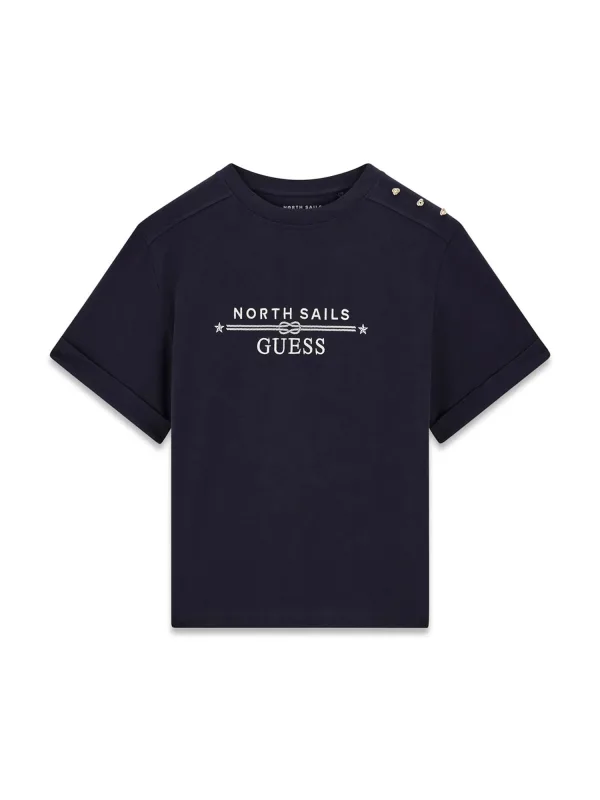 - Bij aboutyou.nl kun je GUESS Shirt 'Guess x North Sails' ivoor / marine kopen voor slechts €30,32 , dat is 20% goedkoper dan bij Sneakin (€37,97).