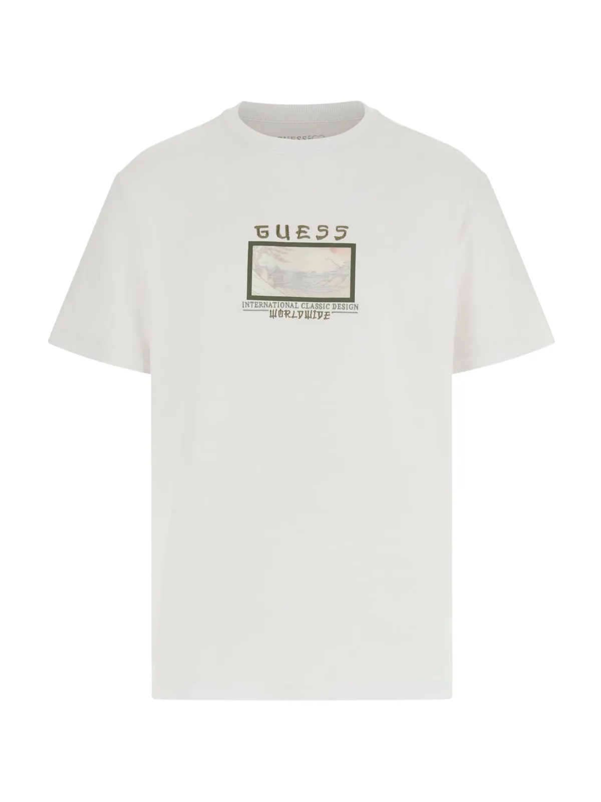 GUESS Shirt ‘JAPAN SMALL LANDSCAPE’ lichtbeige / olijfgroen / wit Prijzen