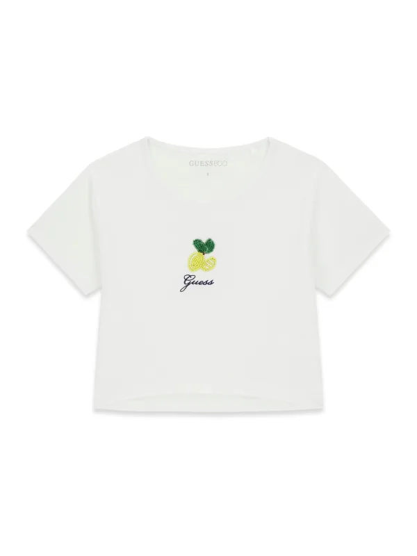 Design: Gevoerde zoom/rand, Geribbelde kraag, Rechte zoom; Materiaal: Jersey; Halstype: Ronde hals; Motief: Logoprint; Details: Borduursels, Sierstenen; Extra's: Op staal naden, Voelt zacht aan; Pasvorm: Normale pasvorm; Armlengte: Kwartmouw; Lengte: Normale lengte