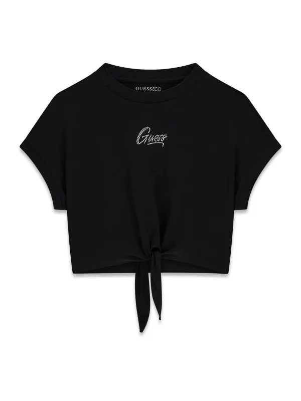 Design: Gevoerde zoom/rand, Gesneden mouw, Om te knopen/binden, Nektape; Materiaal: Jersey; Halstype: Ronde hals; Motief: Effen; Details: Sierstenen; Extra's: Op staal naden, Voelt zacht aan; Pasvorm: Normale pasvorm; Armlengte: Kwartmouw; Lengte: Korte pasvorm
