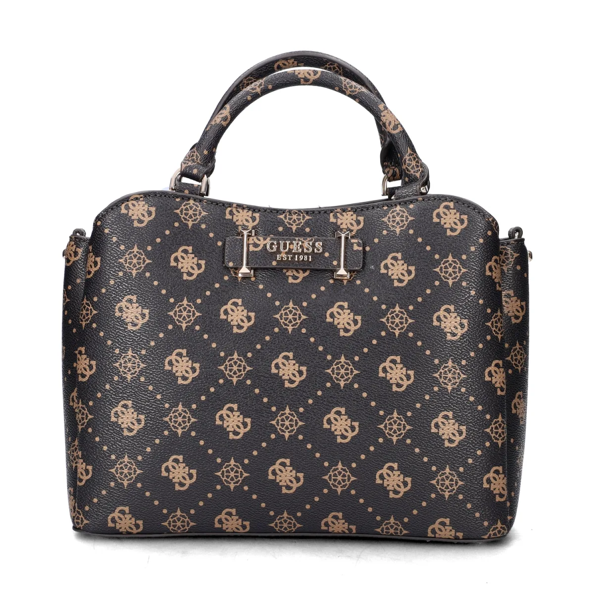 Guess Silia Girlfriend dames handtas Handtas of crossbody? Draag deze tas hoe jij wilt en hij maakt je look helemaal compleet. Uitgevoerd in imitatieleer met het Guess 4G-logo op de print. De tas wordt geleverd met een schouderband. De voering is van canvas. De tas bestaat uit één hoofdvak welke afsluitbaar is met de rits en twee kleinere vakken aan weerszijde van het hoofdvak. Afmetingen: 31x22x11 cm.