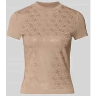 Dames T-shirt van Guess;Elastische katoenen garnering;Slim Fit;All-over strass-steentjes;Opstaande kraag;Logo-detail;Ruglengte bij maat S: 51 cm