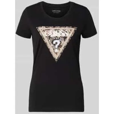 T-shirt van Guess voor dames;Elastische katoenmix;Slim fit;Met siersteentjes;Logodetail;Ronde hals;Ruglengte bij maat S: 62 cm
