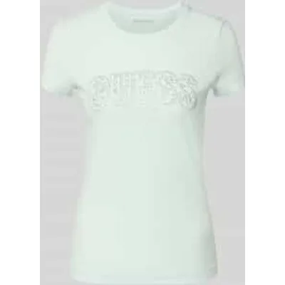 dames T-shirt van guess;Elastische katoenmix;Slim fit;met strass-steentjes;Ronde hals;Logo-detail;Ruglengte bij maat S: 59 cm