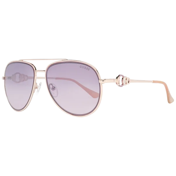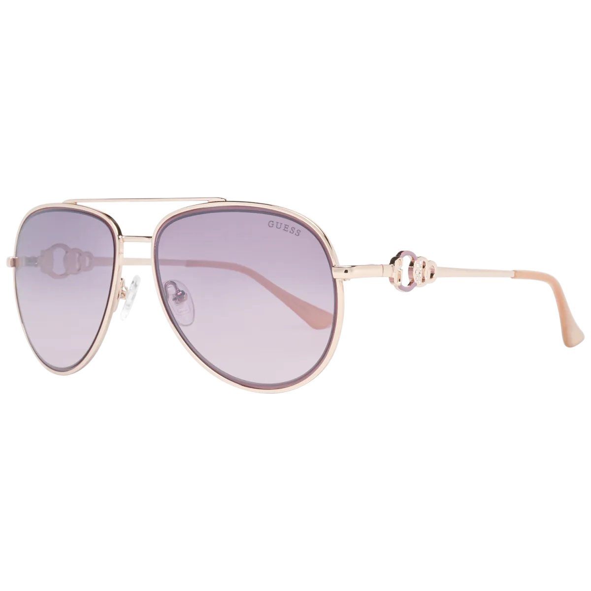 Guess Sunglasses GF0344 28U 56 Women Extras: Geen extra's Frame kleur: Rosegold Frame materiaal: Metaal Glas kleur: Paars Glas materiaal: Kunststof Categorie filteren: 2 Stijl: Piloot Glas-Effect: Geen extra's bescherming: 100% UVA & UVB Glas breedte: 56 Glas hoogte: 50 Web breedte: 17 Tempel Lengte: 135 Veer Scharnier: Nee Leveringsomvang: Etui