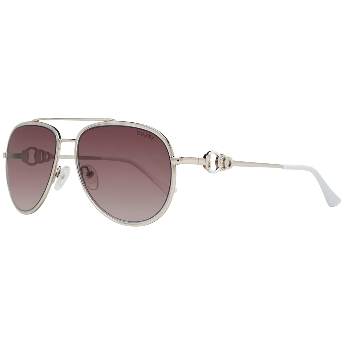 Guess Sunglasses GF0344 32F 56 Women Extras: Geen extra's Frame kleur: Goud Frame materiaal: Metaal Glas kleur: Bruin Glas materiaal: Kunststof Categorie filteren: 3 Stijl: Piloot Glas-Effect: verloop bescherming: 100% UVA & UVB Glas breedte: 56 Glas hoogte: 48 Web breedte: 17 Tempel Lengte: 135 Veer Scharnier: Nee Leveringsomvang: Etui