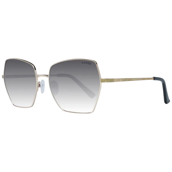 Guess Sunglasses GF6137 32B 57 Extras: Geen extra's Frame kleur: Goud Frame materiaal: Metaal Glas kleur: Grijs Glas materiaal: Kunststof Categorie filteren: 3 Stijl: Rechthoekig Glas-Effect: verloop bescherming: 100% UVA & UVB Glas breedte: 57 Glas hoogte: 49 Web breedte: 17 Tempel Lengte: 140 Veer Scharnier: Nee Leveringsomvang: Etui Frame Stijl: Full-Rim