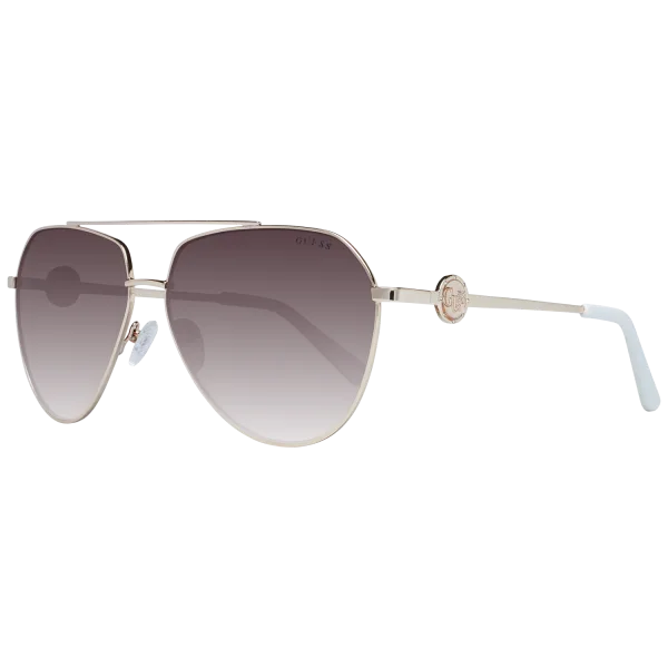 Guess Sunglasses GF6140 32F 62 Extras: Geen extra's Frame kleur: Goud Frame materiaal: Metaal Glas kleur: Bruin Glas materiaal: Kunststof Categorie filteren: 3 Stijl: Piloot Glas-Effect: verloop bescherming: 100% UVA & UVB Glas breedte: 62 Glas hoogte: 52 Web breedte: 14 Tempel Lengte: 140 Veer Scharnier: Nee Leveringsomvang: Etui Frame Stijl: Full-Rim