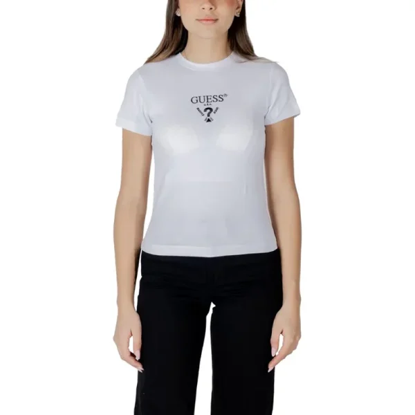 Guess Collette dames T-shirt van wit katoen. Authentiek Guess-merkkledingstuk - streetwear/sportkleding design van Guess - Guess voor dames, perfect voor dagelijks gebruik - dit witte Guess T-shirt past perfect bij de rest van je garderobe - comfortabel katoen - klassiek - Collette -