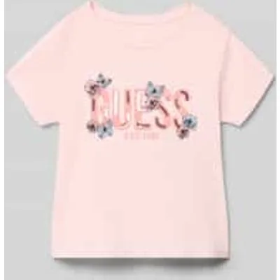 T-shirt van Guess voor kinderen;Mix van katoen en elastaan;Regular fit;Labelstitching;Pailletten;Ronde hals;Ruglengte bij maat 140: 41 cm