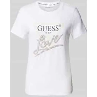 T-shirt voor dames van GUESS;Puur katoen;Recht model;Ronde hals;Labelprint;Met strass-steentjes;Met siersteentjes;Ruglengte bij maat S: 57 cm