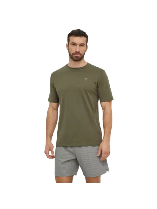 Guess Triangle G heren T-shirt van kaki katoen. Authentieke kleding van het merk Guess - streetwear/sportkleding design van Guess - Guess voor mannen, modieus en perfect voor dagelijks gebruik - dit kaki T-shirt van Guess past perfect bij de rest van je garderobe - comfortabele katoenkwaliteit - klassiek - Triangle G -