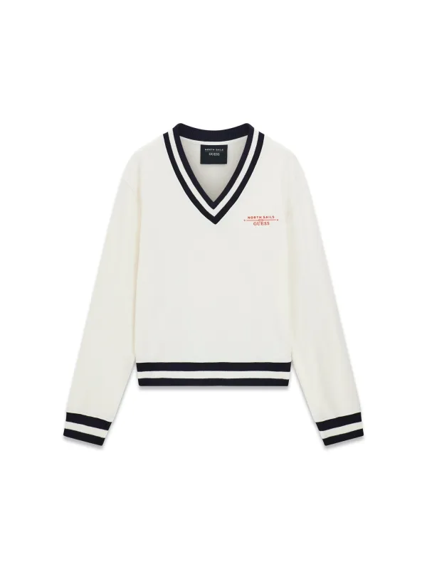 - Bij sneakin-nl.nl kun je V-hals sweatshirt voor dames Guess kopen voor slechts €68,03 , dat is 31% goedkoper dan bij ABOUT YOU (€98,10).