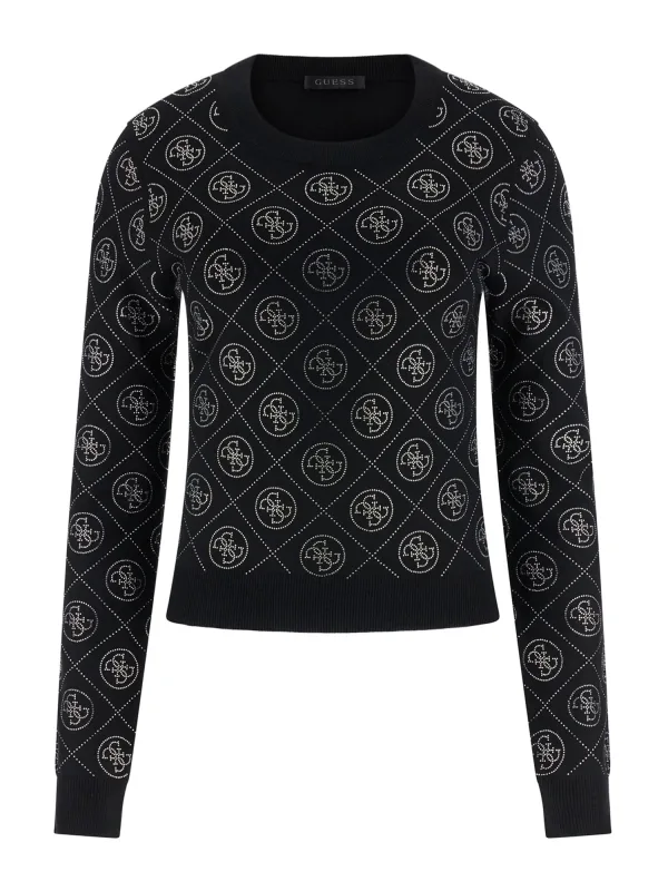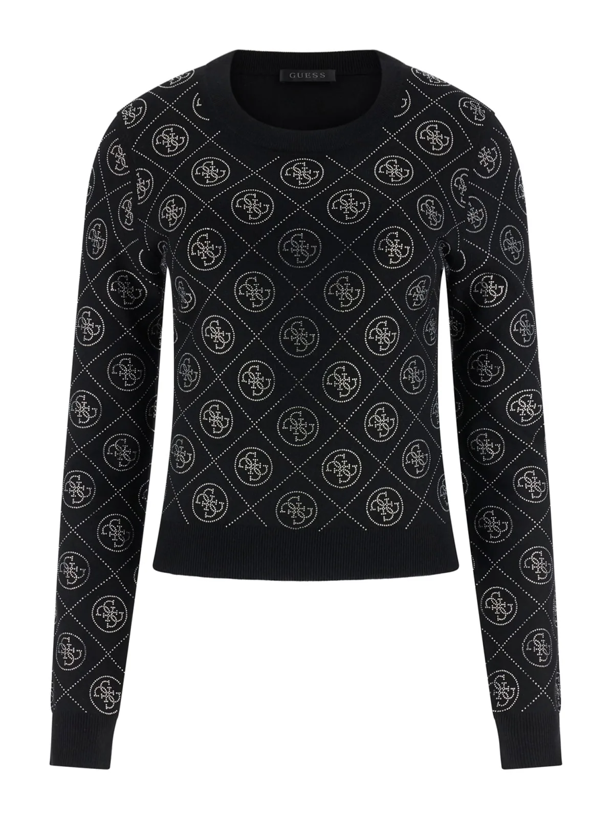 Design: Geribbelde kraag, Rechte zoom, Geribd ceintuurtje; Materiaal: Knitwear; Halstype: Ronde hals; Motief: Logoprint; Details: Sierstenen; Extra's: Met halfedelstenen, All-over patroon, Gestructureerd oppervlak, Label print; Pasvorm: Normale pasvorm; Armlengte: Lange mouw; Lengte: Normale lengte