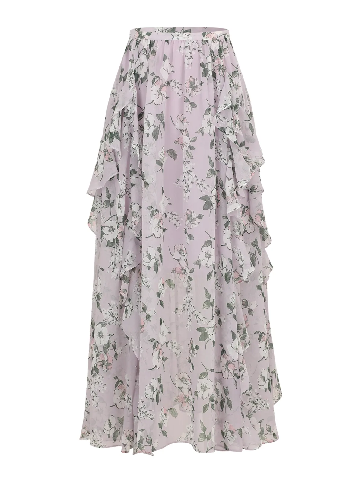 Design: Gevoerde zoom/rand, Elastische taille/zoom; Materiaal: Chiffon; Motief: Bloemenprint; Details: Volant, Gedrapeerd; Extra's: All-over patroon; Lengte: Lang/maxi; Pasvorm: Normale pasvorm