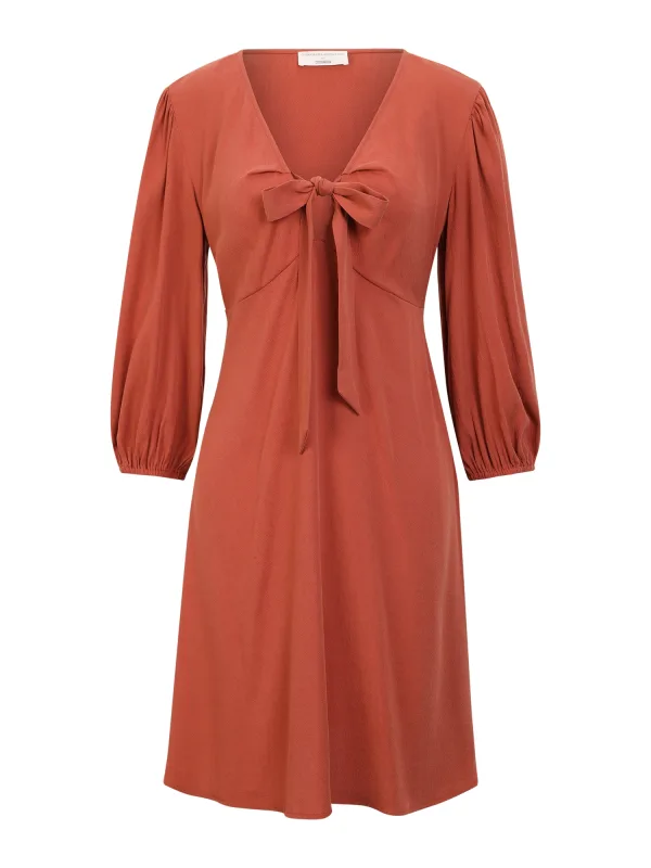 Design: Gevoerde zoom/rand, Pofmouwen, Om te knopen/binden; Materiaal: Lyocell; Halstype: V-hals; Motief: Effen; Details: Cut-outs, Gedrapeerd; Extra's: Op staal naden, Buigzame grip; Lengte: Knielengte; Snit: Uitlopend; Pasvorm: Normale pasvorm; Armlengte: Driekwart mouw