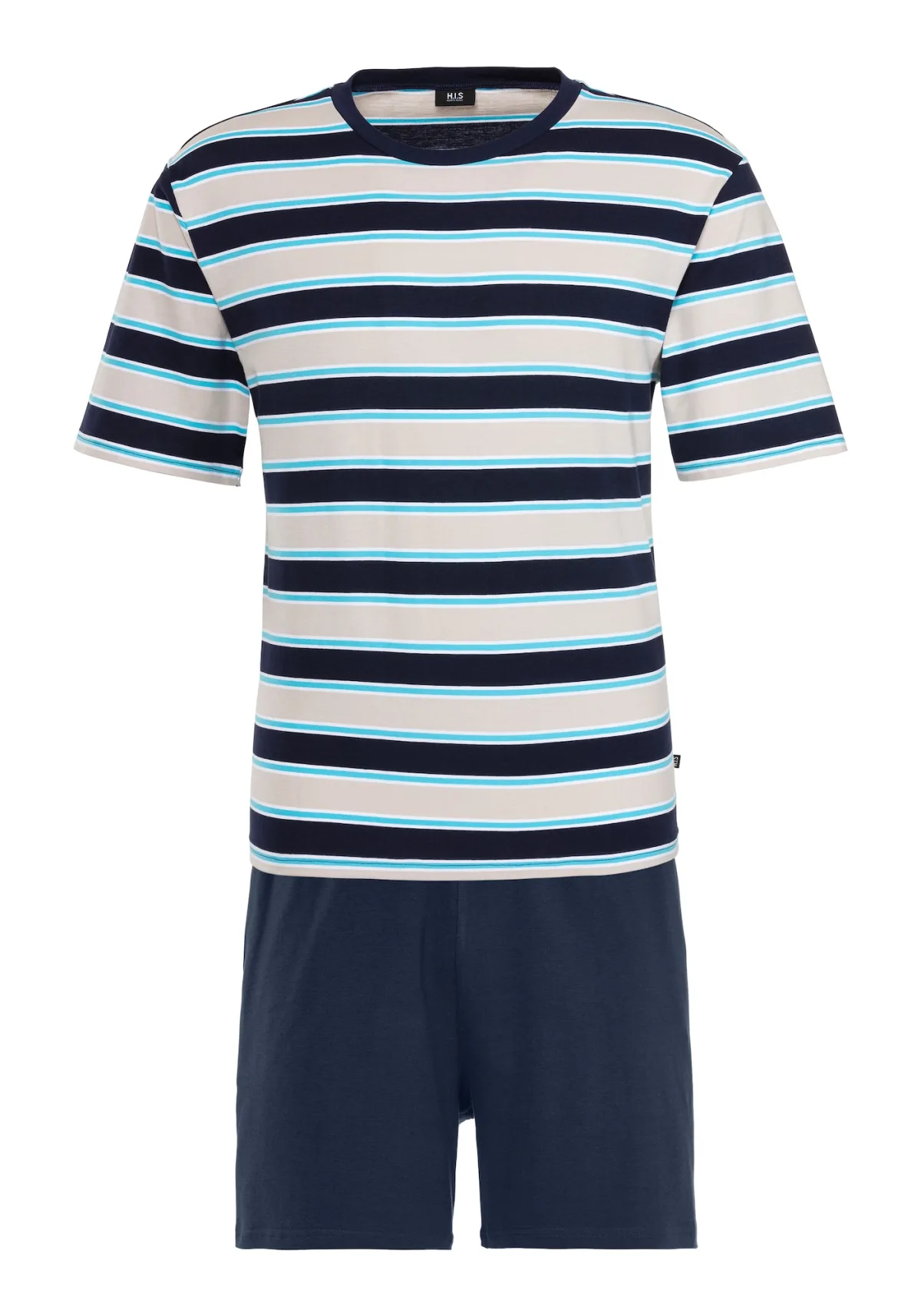 Specificaties: H.I.S Pyjama kort navy / azuur / lichtgrijs / wit