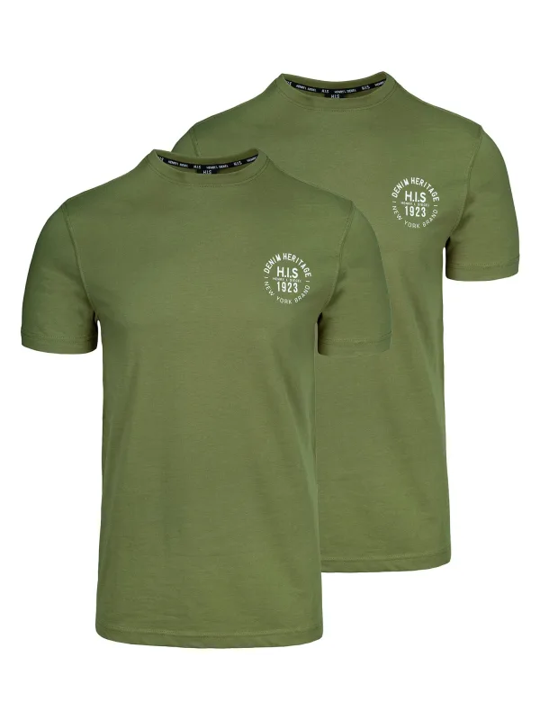 H.I.S Shirt ‘Denim Heritage 1923’ olijfgroen Prijzen
