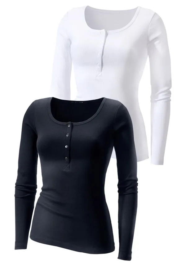 Design: Gevoerde zoom/rand, Rechte zoom, Knop placket; Materiaal: Jersey; Halstype: Henley hals; Motief: Effen; Extra's: Op staal naden, Voelt zacht aan; Pasvorm: Normale pasvorm; Kleuren per verpakking: Meerdere kleuren per verpakking; Aantal: 2 Pack; Armlengte: Lange mouw; Lengte: Normale lengte