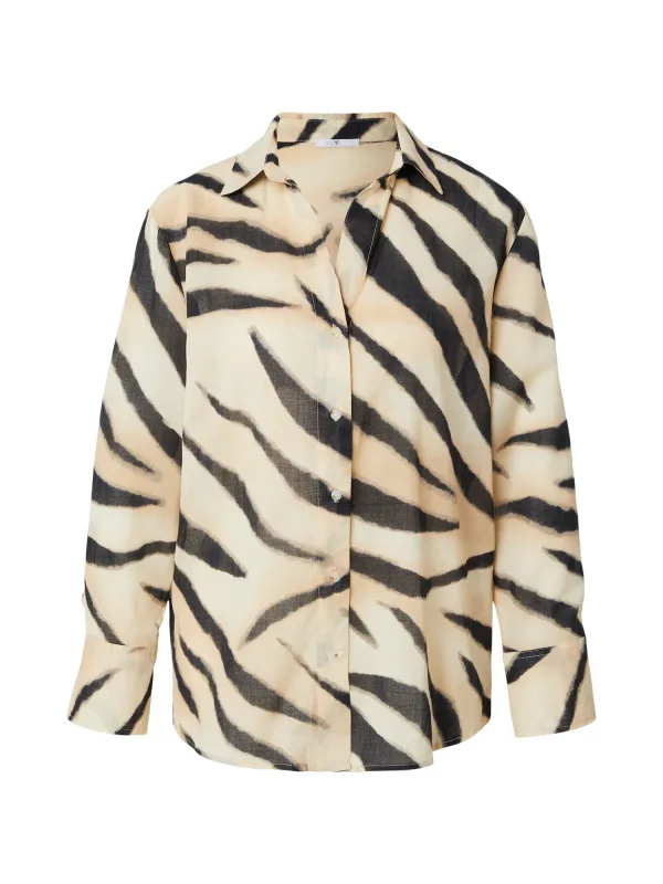 Blouse type: Klassieke blouse; Design: 2-knoops manchetten, Gevoerde zoom/rand, Placket; Type sluiting: Knoopsluiting; Materiaal: Katoen; Motief: Dierenprint; Extra's: All-over patroon, Lichte stof; Pasvorm: Normale pasvorm; Armlengte: Lange mouw; Lengte: Normale lengte