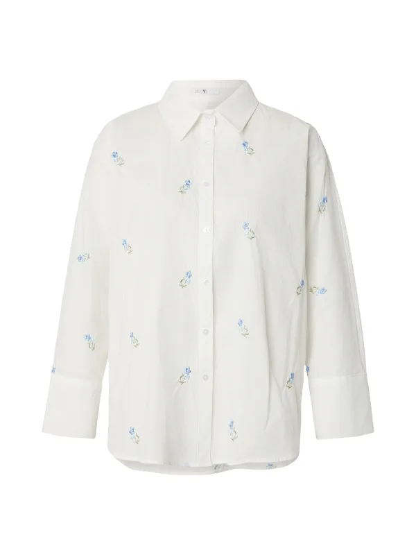 Blouse type: Klassieke blouse; Design: Gevoerde zoom/rand, Knop placket, Ronde zoom, Verlengd rugpand; Type sluiting: Knoopsluiting; Materiaal: Katoen; Motief: Bloemenprint; Kraag: Kentkraag; Details: Borduursels; Extra's: All-over patroon, Op staal naden, Voelt zacht aan; Pasvorm: Normale pasvorm; Armlengte: Lange mouw; Lengte: Normale lengte