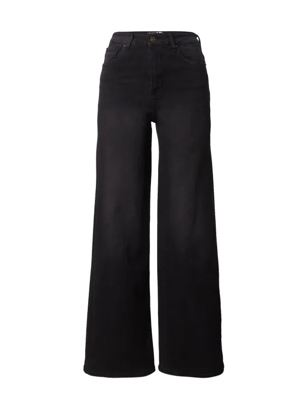 Design: Gevoerde zoom/rand, Ritssluiting, 5-pocket-style, Knop sluiting; Type sluiting: Ritssluiting; Materiaal: Denim; Motief: Effen; Extra's: Studs, Op staal naden, Riemlussen; Wassing: Colored denim; Lengte: Lang/maxi; Pasvorm: Wide leg; Taillehoogte: High waist