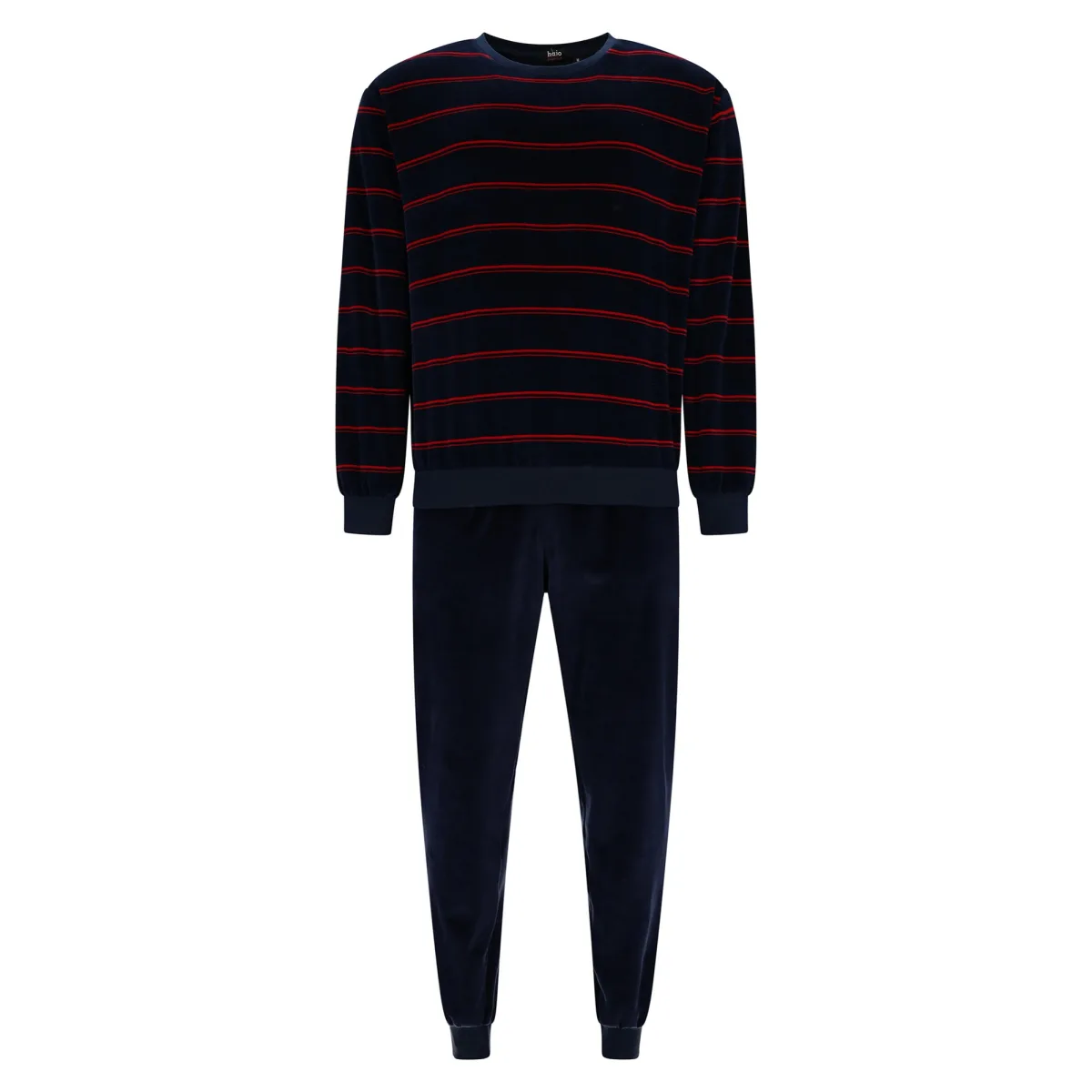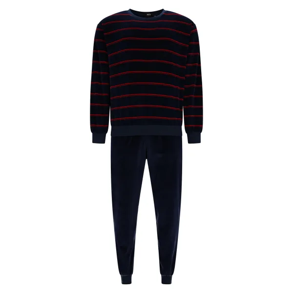 Hajo Pyjama's voor mannen. Langsleeve shirt met ronde halslijn en manchetten. Lange, effen broek. Pyjama's gemaakt van gezellige velours.
