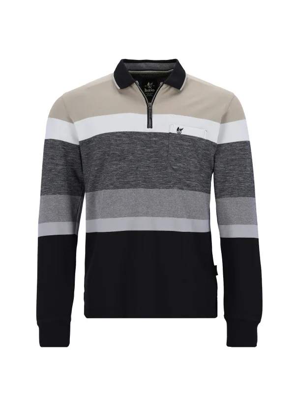De Hajo herenpolo met lange mouwen combineert sportieve stijl met superieur comfort en is de ideale metgezel voor moderne mannen. De kleurcontrasterende troyerkraag geeft het shirt een elegante touch die op verschillende manieren gecombineerd kan worden. Een klein geborduurd logo siert de opgestikte borstzak en voegt subtiele accenten toe die de hoogwaardige afwerking benadrukken. De praktische ritssluiting op de kraag maakt individuele aanpassingen mogelijk en biedt daarom maximale flexibiliteit. De normale pasvorm zorgt voor een comfortabele pasvorm die bewegingsvrijheid en comfort biedt in elke situatie. Dit shirt met lange mouwen is gemaakt van hoogwaardige materialen en garandeert niet alleen duurzaamheid, maar voelt ook zacht aan. Of het nu voor een ontspannen dag op kantoor is of een casual avond met vrienden, de Hajo polo met lange mouwen is een must-have voor stijlbewuste mannen. Laat je overtuigen door de kwaliteit en het ontwerp en geniet van modieuze veelzijdigheid.